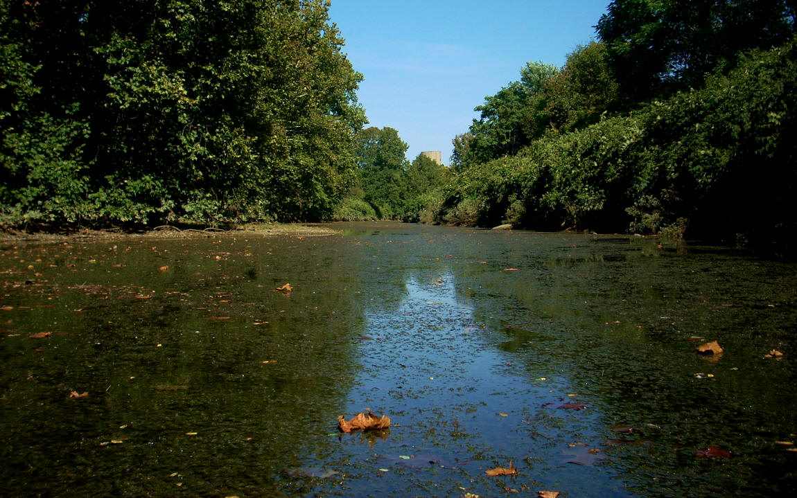 Boggs Island... It's small at about 1/3 mile long and it's way skewed toward the Ohio shoreline. I was able to navigate through the channel, but I was doing so on a bed of alga so thick that it felt like I was paddling through the length of a 1/3 mile sponge. I wasn't too comfortable doing this, and I don't think I'd do it again, but I just had to see what paddling through it was like and I paddled as gently as I could so as not to damage the alga. .