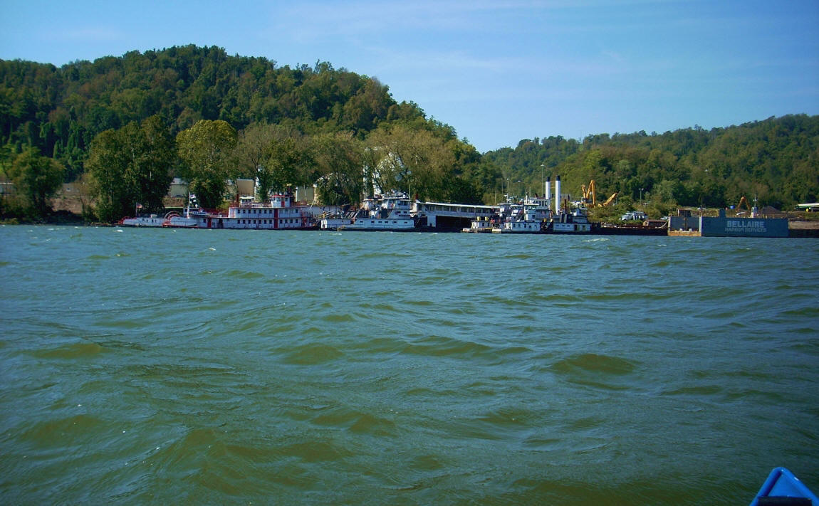 I mentioned Bellaire Harbor Services earlier, and they have another Ohio location at this point, much larger than the others I'd seen. Below isn't the best photo in terms of lighting, but it shows the wide array of vessels that were docked here, to include several sternwheelers. Amongst them was the R.A. Denny that had passed me down in Moundsville this year returning from the Marietta Sternwheel Festival. Belliare must be pretty good at what they do to have all this business!