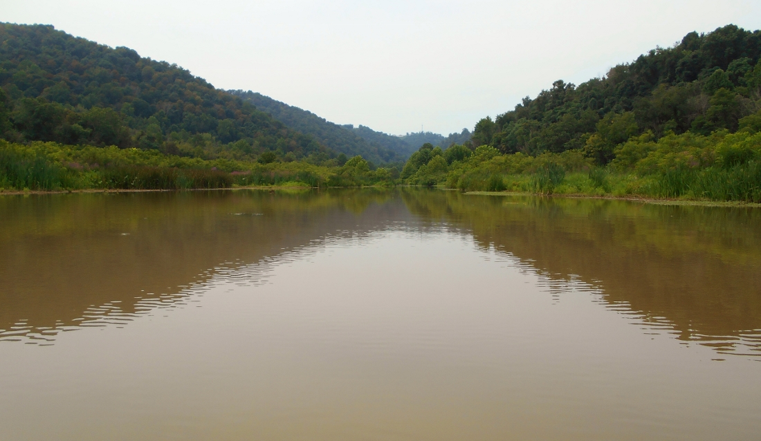I wanted to paddle back into Proctor Creek but after seeing construction cranes on either side of the stream just past West Virginia Route 2 I decided against it. They must have been working on the bridge. Dry Run comes in here too, though, and you can paddle back into this one a little way. It actually corkscrews back and comes to a dead end near a power pole.