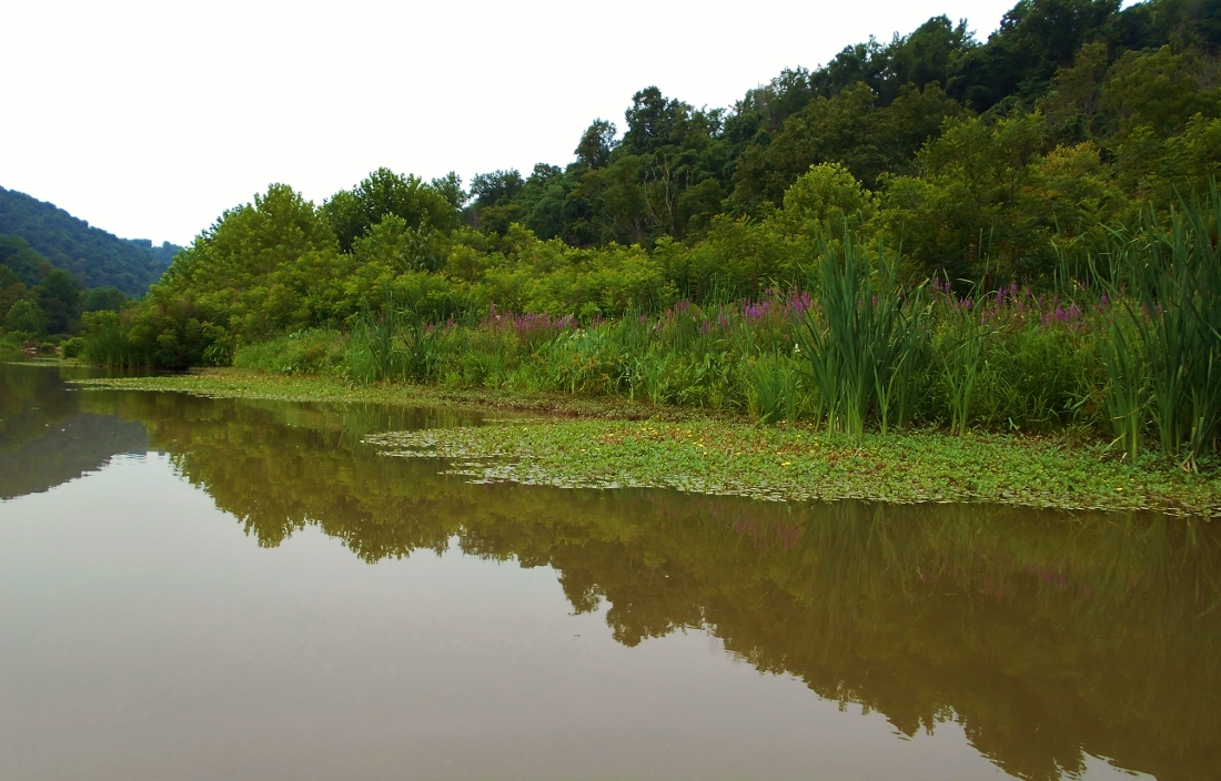 This section of the Ohio River is very industrial with a lot of energy related traffic. There are actually 3 facilities with operations that run a full mile of riverfront (Ormet, Bayer and Axiall (formerly Pittsburgh Plate Glass or PPG). Still, one of the side streams out here (Opossum Creek at mile 120) is one the prettiest I've seen in terms of the diversity of plant life.