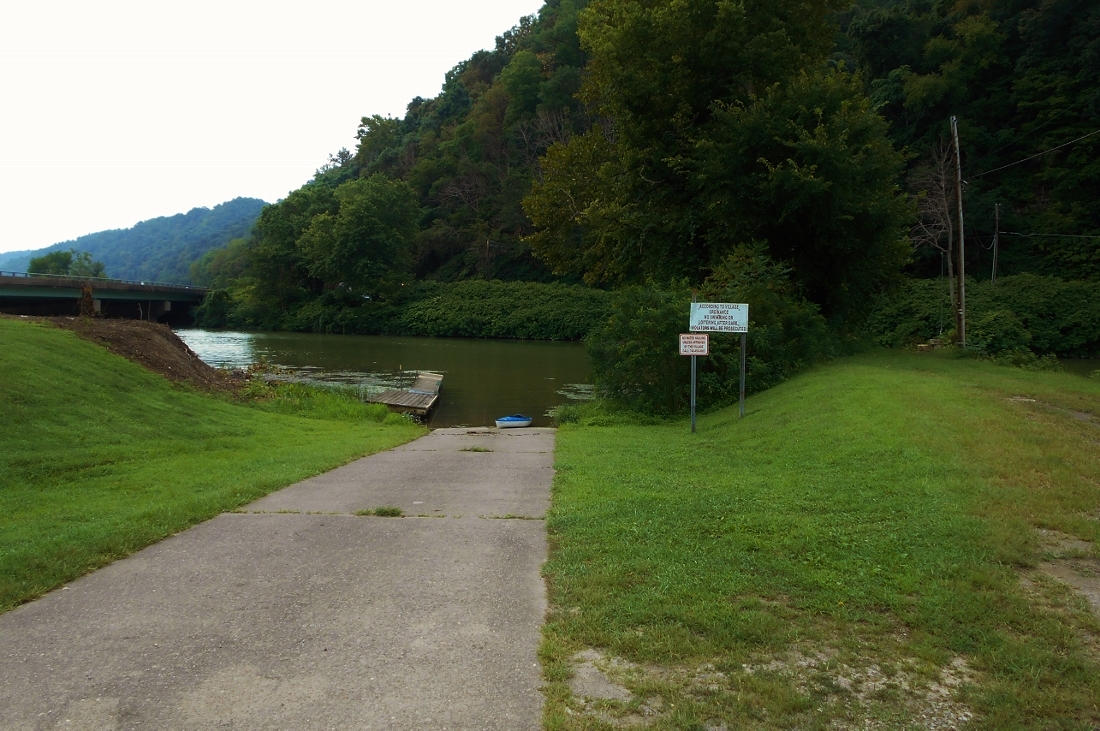 By now you'll have been able to spot the community of Proctor, West Virginia and Proctor Creek at the point of a light and day marker at mile 122. Here you'll find what would probably be the nicest place to put in in this section, were that possible. There's a park here which might be private. As I look at a map I see that this is the location of Spieler's Club which can be found on Facebook. They don't have a ramp but they do have a little dock and the point of land here is low enough to make for an easy put in. I'm not sure you'd be allowed to do it though. In any case it's a pleasant spot.