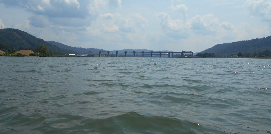 ...and here's a perspective of exactly what it looks like for a paddler when you near a lock and dam from the middle of the river. Yes, it's a little intimidating and I wouldn't have gotten this close had not the wind been pushing the water upstream at a pretty good clip. I normally would not have gotten this close. On a side note the facility you see on the left is, according to the charts, Arrow Concrete (more on Arrow here). Arrow is actually headquartered in Connecticut but they have an operation here.