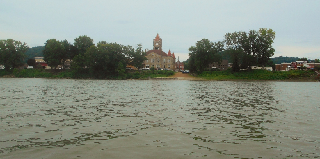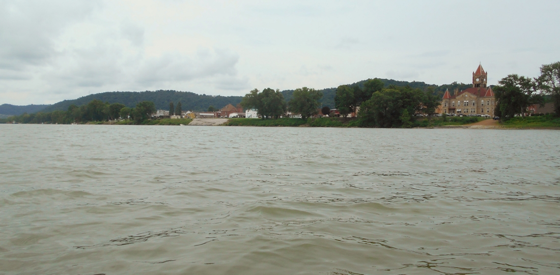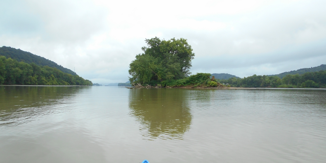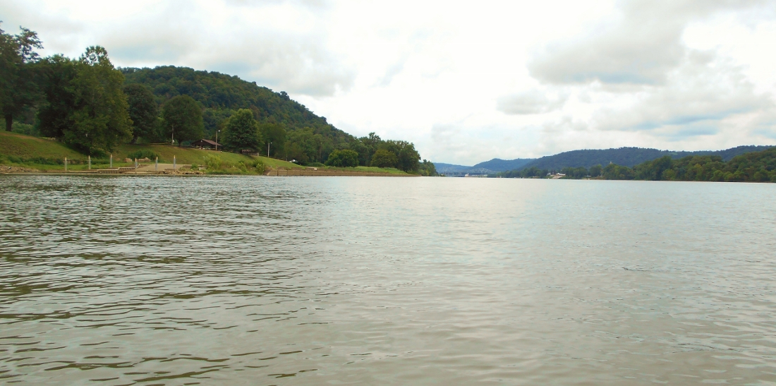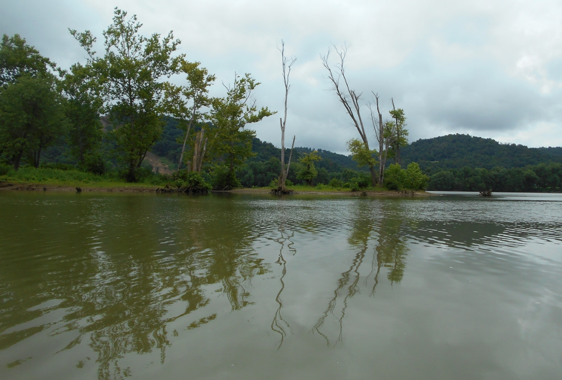 In this section you have a few choices as far as put ins. All are good ones that I'll describe herein, but today I chose the one in Paden City, West Virginia's riverside park. As I was getting my gear ready I met with the scene below, and once on the water I paddled downriver, went around the towhead and then headed upriver to New Martinsville. You don't have to do all this, of course. You could just paddle up to New Martsinville and back. In fact, you could paddle Fishing Creek alongside New Martinsville alone. It goes back 3 1/2 miles for the flat water paddler.