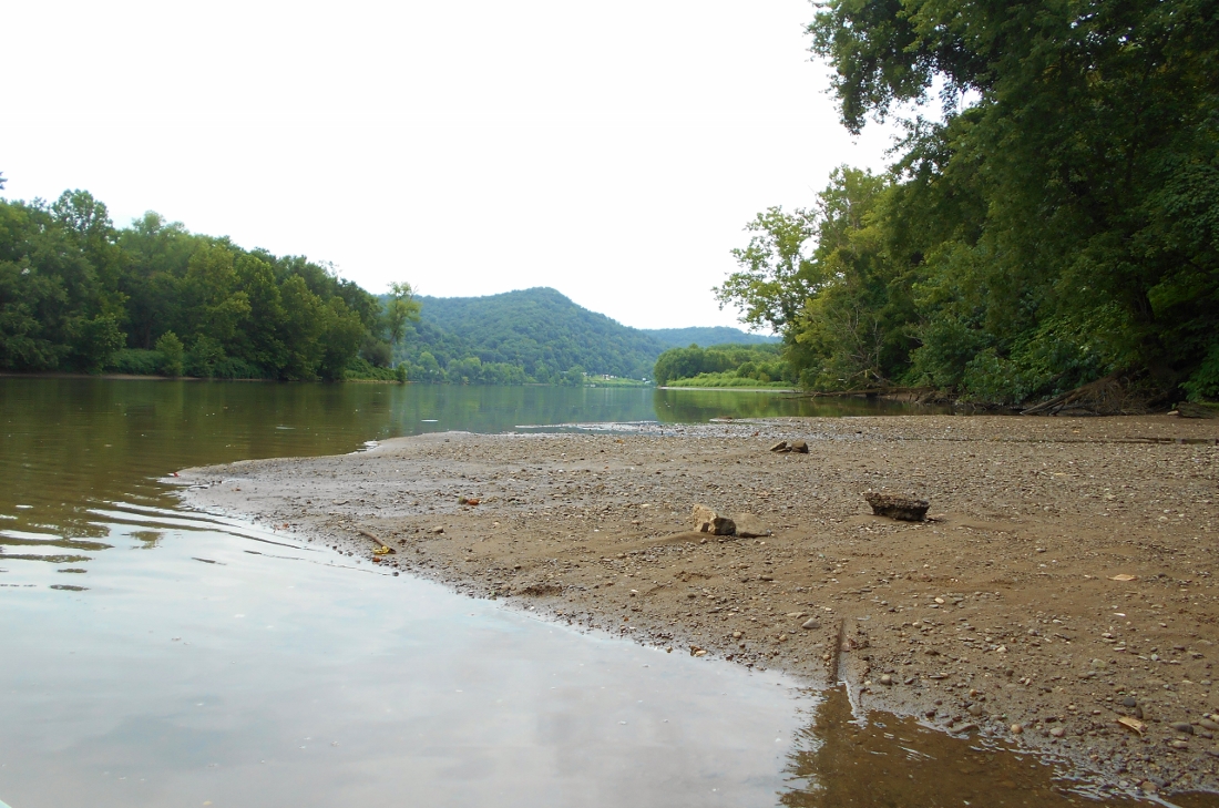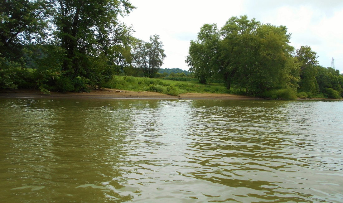 At any rate, Witten Towhead lies just downriver from Paden City at mile 135.5. I actually had to look up exactly what a "towhead" was. Webster's defines it as a "low, alluvial or shoal in the river." It looked to me like a small island and, turning upriver from here, you'll find that Williamson Island comes next. I found this to be one the most hospitable looking islands I'd yet encountered on the Ohio River. The entire left side (looking upriver) is almost one continuous beach. Here are some scenes from around these two landmasses.