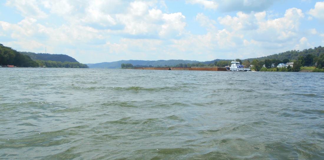 Finally, two more. Here's one looking upriver. You may note the push boat (as well as the jet ski) coming downriver at me. The push boat was the Robert E. Murray of Murray American. I'd encountered Murray American for the first time on my last trip only a week earlier. This was now the second time in as many trips that I'd seen them.