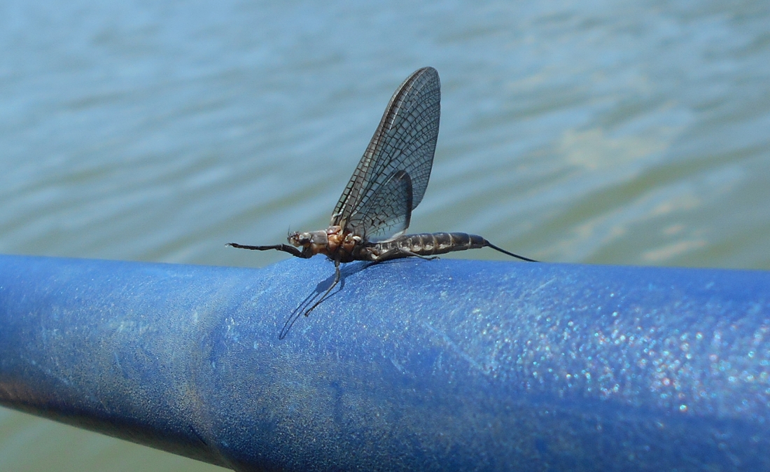 By the time I'd reached this point I'd noticed something - a ton of mayflies! They were all over the place today, yet when I came back to this section a week later they were completely gone! These things seem to arrive en masse and then they die within a few days! I recall them arriving much later in the season in previous years though. Here's a view of one...