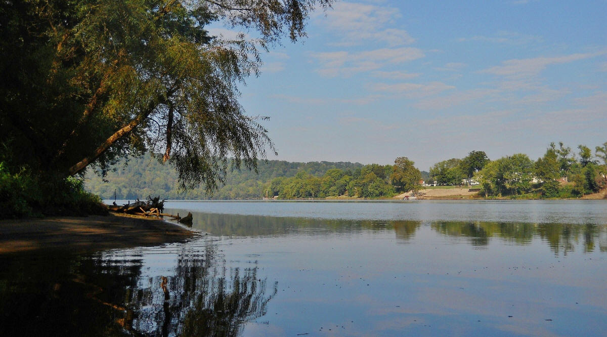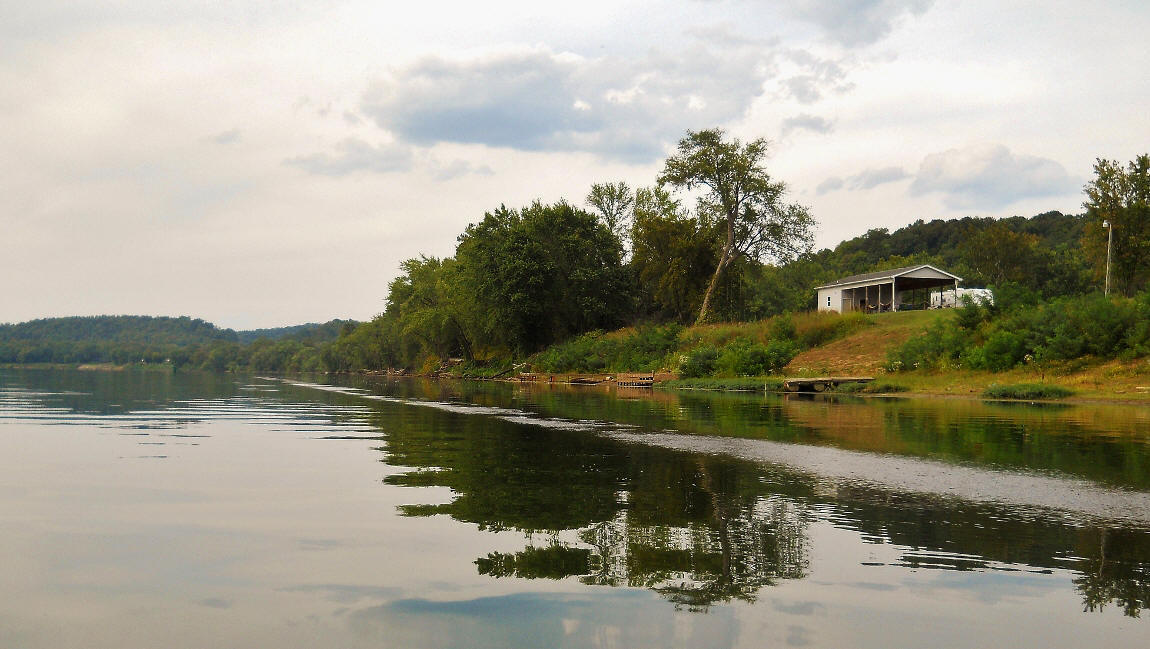 Anyway, once you pass the last of the AEP operation on the West Virginia side you’ll be in the midst of the community of Racine, Ohio. I glanced up through the shoreline trees at one point and saw a particularly intriguing old building here. It appeared to have the name of “Cross - Established 1860”, but there’s also a nice little beach here too. Then, going just a little further up, you’ll spot the town boat ramp. Star Mill Community Park is up there, but this ramp isn't actually within the park. It's actually a little further down the road.