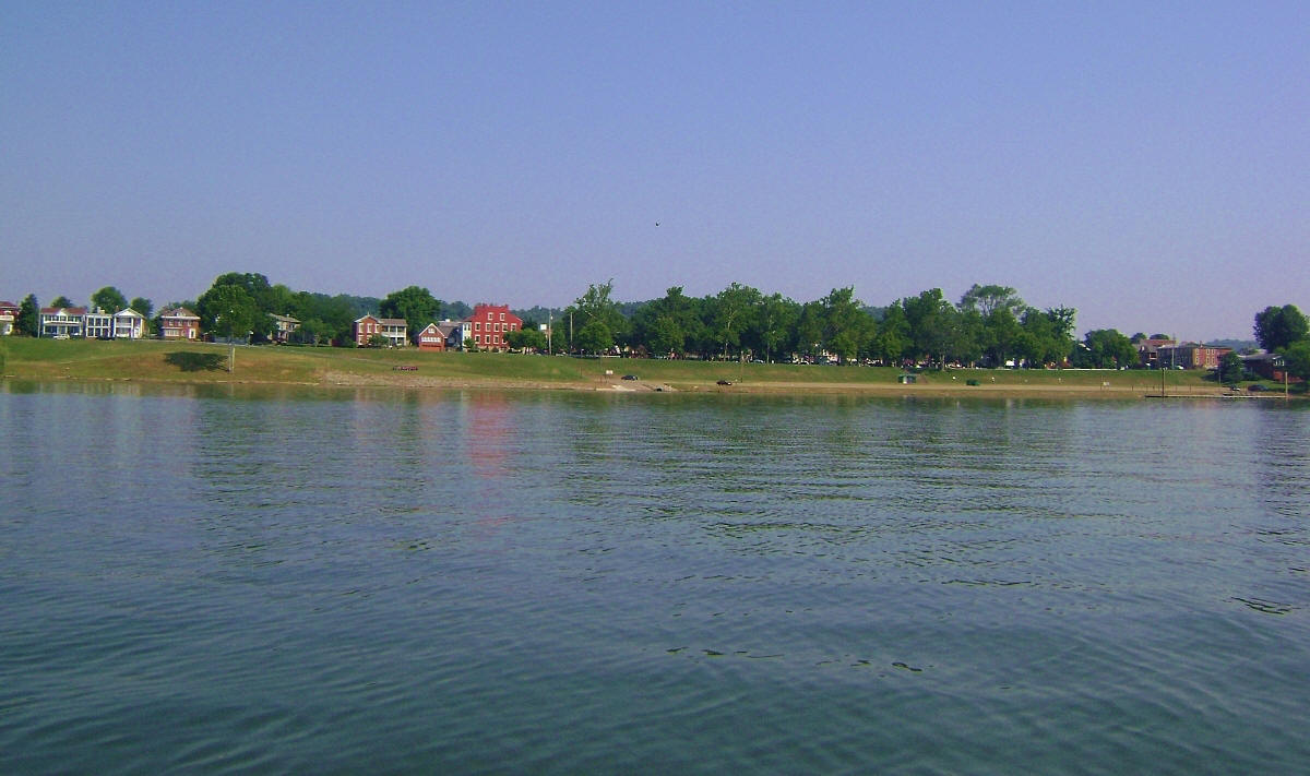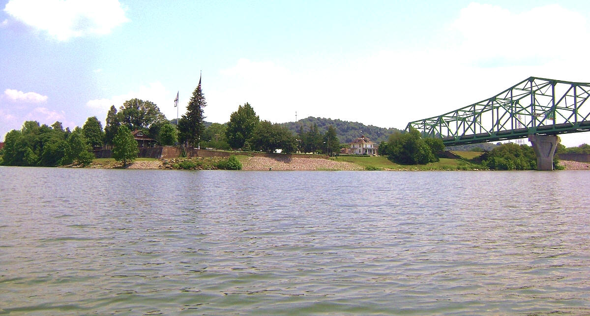 Point Pleasant, West Virginia looks simply outstanding up ahead. The "Point" in Point Pleasant must stand for the intersection of the rivers, and the park at this spot (Tu-Endie-Wei State Park) still has a pioneer feel to it. I’ve visited and found it to be an incredibly serene place with nice shaded park benches overlooking the river. Also on the grounds they have a monument dedicated to one of the Indian Wars, this one fought against Chief Cornstalk in 1774. You'll see it in the photos. It’s the obelisk next to the flag.