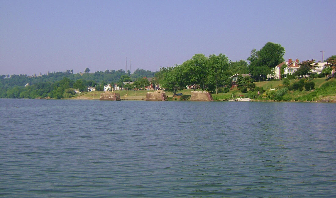 Speaking of ramps, there is another one just off of Tu-Endie-Wei Park but it’s been blocked off by concrete slabs. Seems it’s been claimed as private property. If you want to put in at Point Pleasant you’ll have to use the little pier that’s been provided by the city a little further up on the Ohio alongside the downtown area. Here you'll note that they’ve done quite a bit of work to include having Robert Dafford Murals come in and paint a good part of the break wall similar to what they've done in Maysville, Kentucky. You’ve got to see these works of art to believe them! There’s even one that encompasses the entire battle of Point Pleasant!