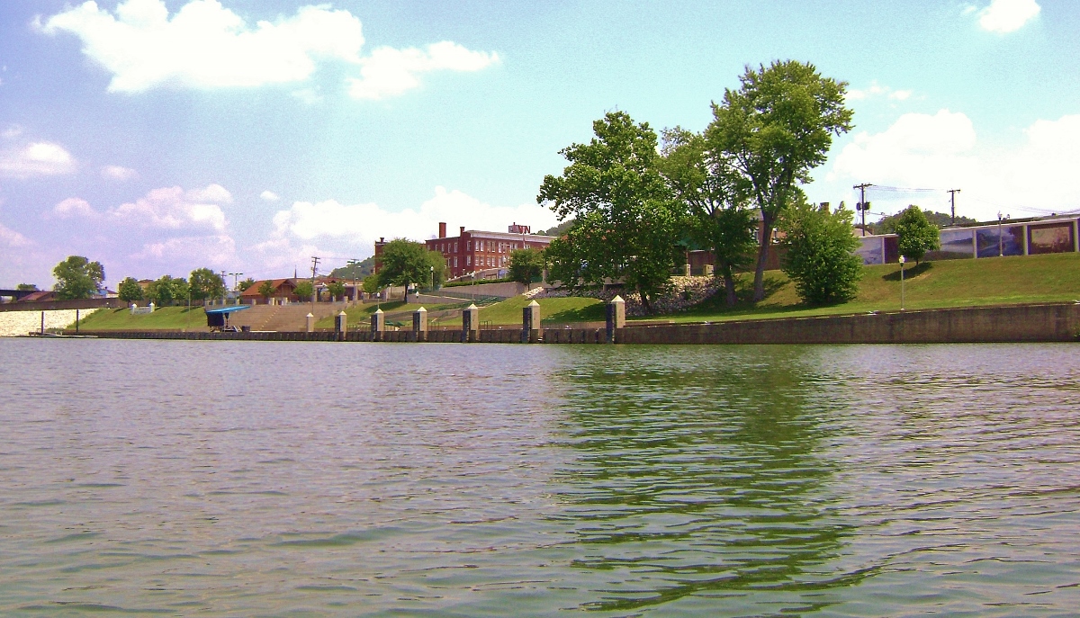 As far as how it’s situated, Gallipolis is a town that is nearly right down on the water and it’s quite inviting. There’s a ramp front and center which comes with a large parking lot and a little above that you can clearly see the town park. It would be easy for a paddler to come in, relax in the park for a while, have a meal at the town diner and get supplies at the Dollar General or the hardware store that are right here off the park. NOTE: Unfortunately, the old hardware store is no longer here. Also, in 2016 the riverfront was updated a little so that riverboats could have easier access to town and so that an amphitheater could be added.