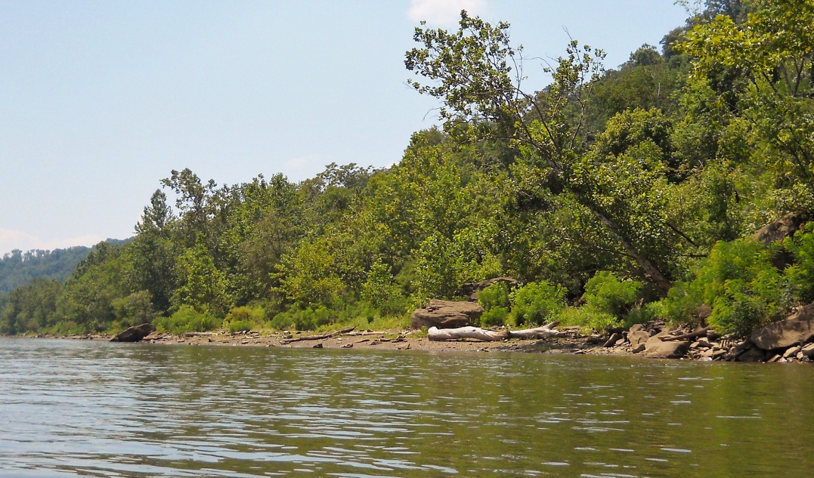 If you, too, head upriver on the Ohio from Guyan Creek you’ll find yourself amid some beautiful West Virginia mountain scenery on your left and some equally beautiful Ohio farmland on your right. If that’s not enough to captivate you, however, you’ll also note that the West Virginia shoreline is almost one continuous beach in here!