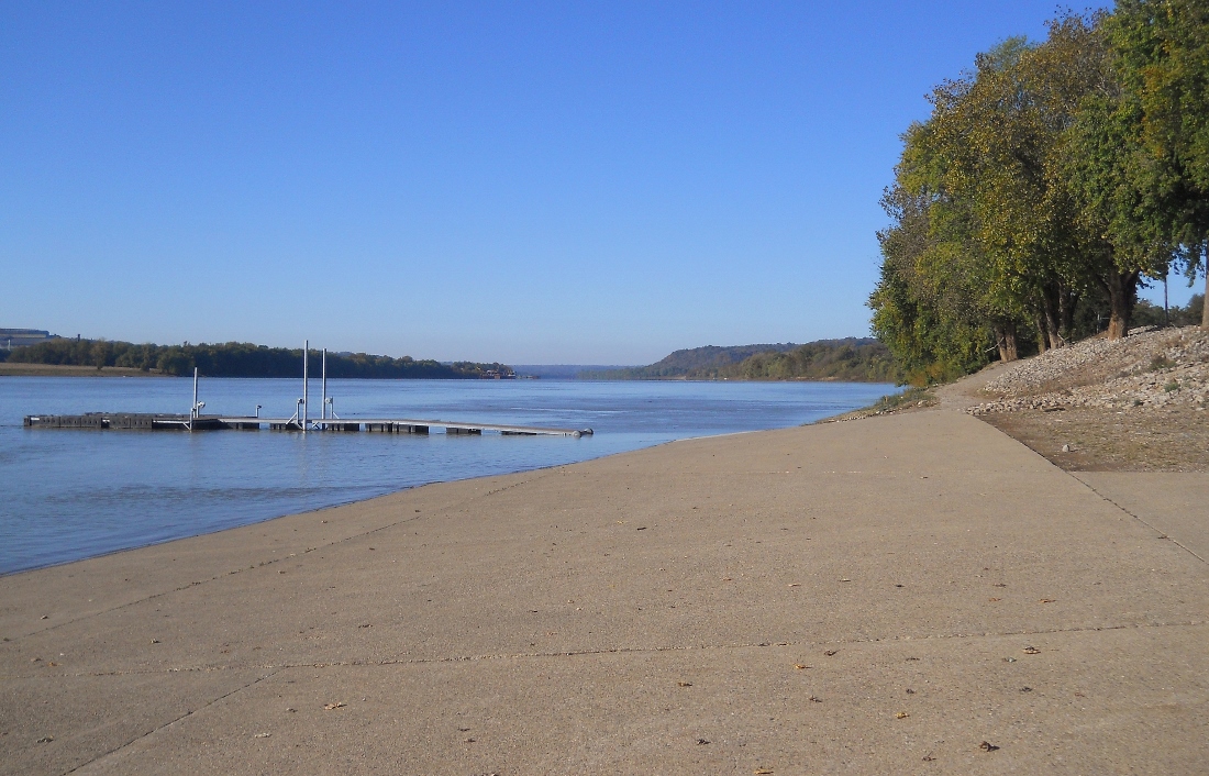 Anyway, the town has a very nice ramp that lies within a large park along the waterfront. It's called Paul Ogle Riverfront Park after an Indiana philanthropist. This is where I put in, to proceed upstream to the Markland Dam, about 6 miles distant. Note, however, that there is another ramp almost directly across the river amid the community of Ghent, Kentucky (Ghent is on Facebook).