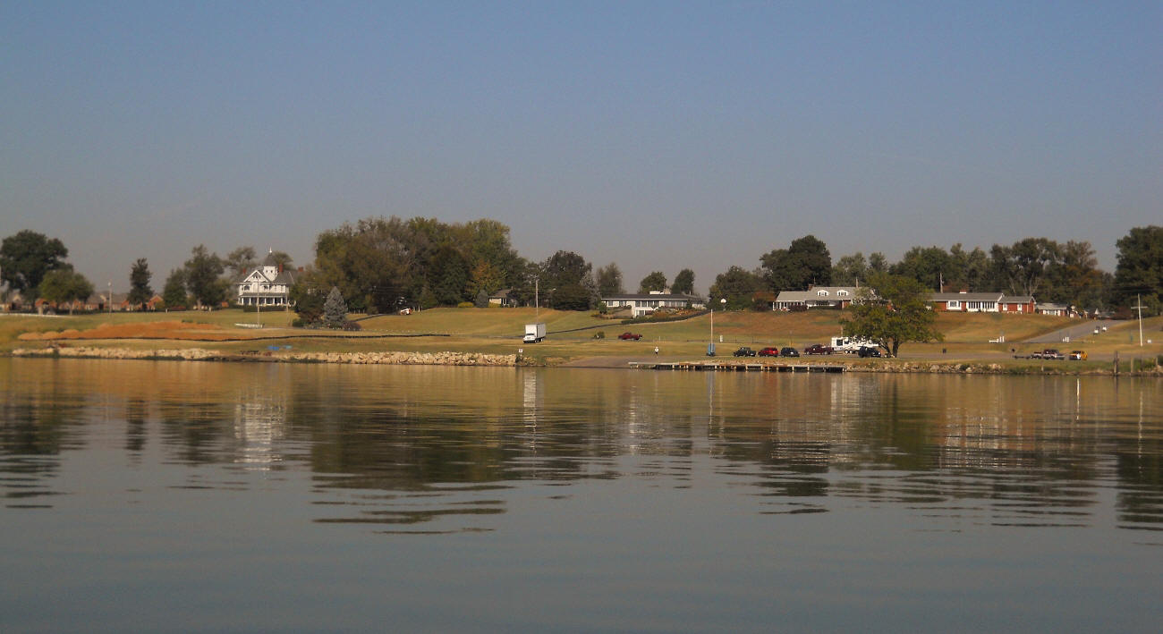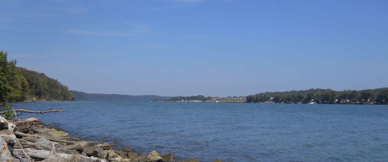I’m now at mile 593 and, blocked from my view at the time on the other side of the island, was Pond Creek on the opposite side of the river. The spot marks the location of the Louisville Yacht Club (as opposed to the Louisville Boat Club described earlier) of Prospect, Kentucky. Pond Creek itself, like all the others in this section, was too crowded with boats and too short to be navigable.