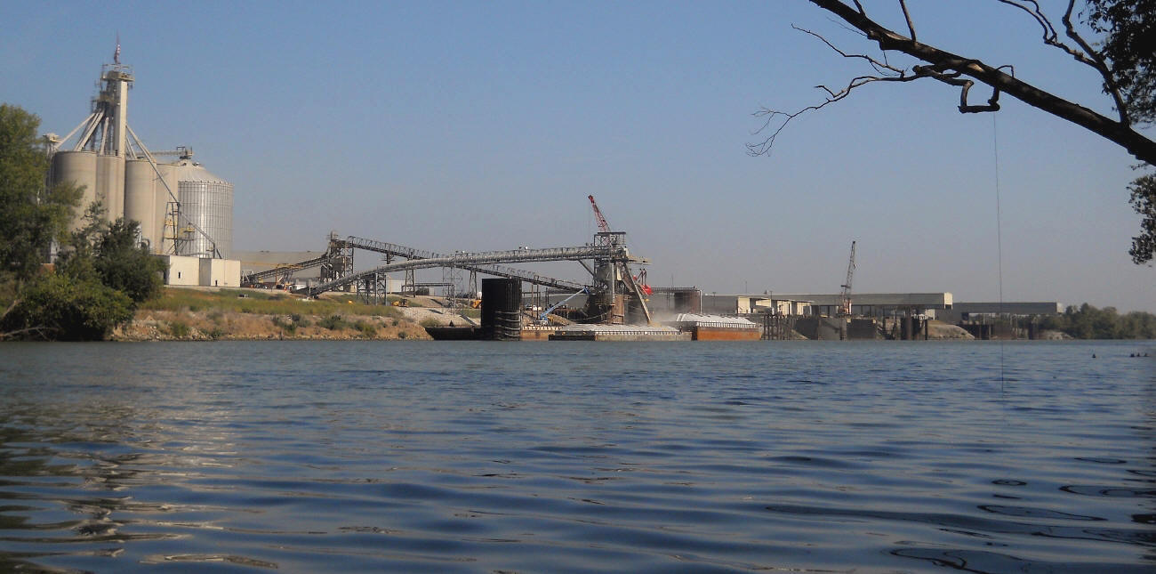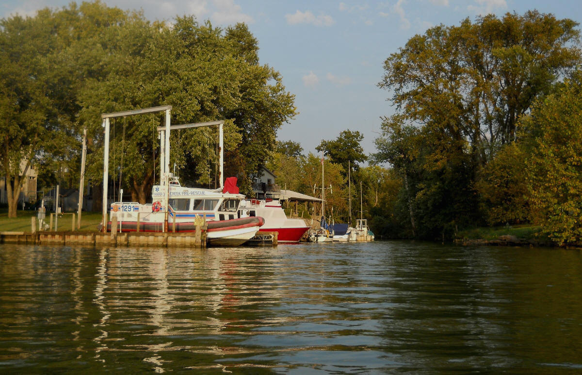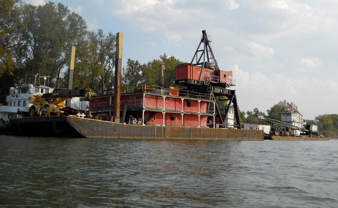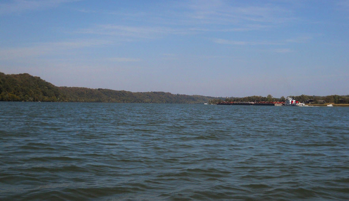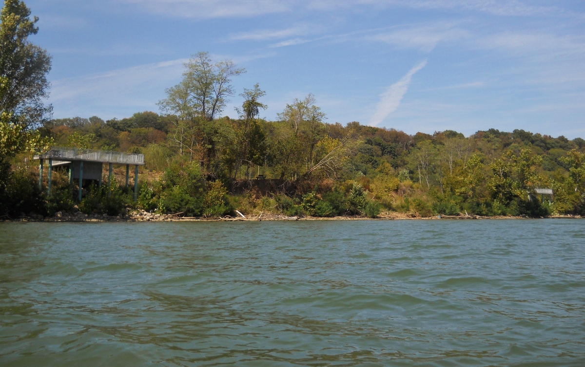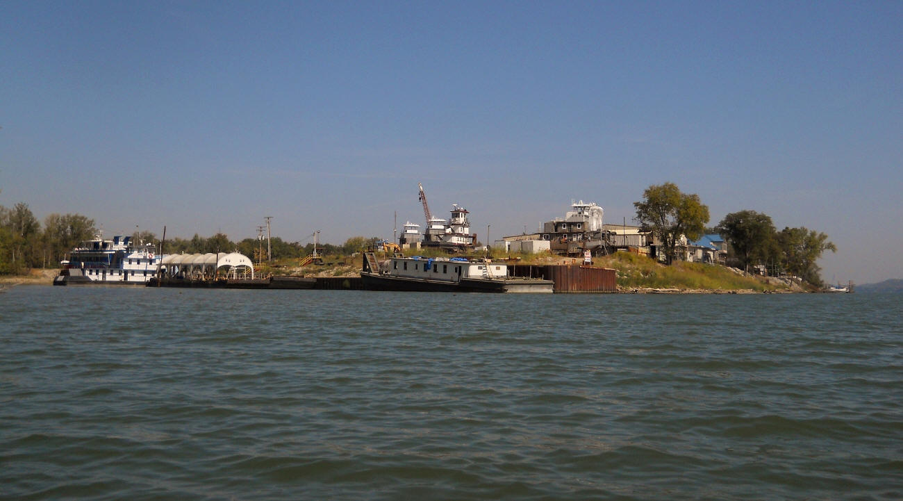 At any rate, after passing the island you’ve got more activity between miles 597 and 596, but this time it’s more in terms of incoming streams and boat related businesses. On the Indiana side there were 2 more coves within this mile. The first actually had a sign discouraging entry by order of the Supreme Court! The second, Lentzier Creek, seemed to basically be a harbor for the Rubaiyat Boat Club. Again, I didn’t paddle in, but I did notice a large number of boats at the mouth that seemed to be in various stages of repair. This was apparently the site of Marine Builders, Inc., a company that specializes in a fully diversified array of marine construction and repair services. In fact, it looks like these guys will build or fix any water-related vessel; be it a towboat, barge, yacht, dinner cruise vessel, whatever – and then deliver it to you. Pretty impressive! (The business sadly closed in 2019)