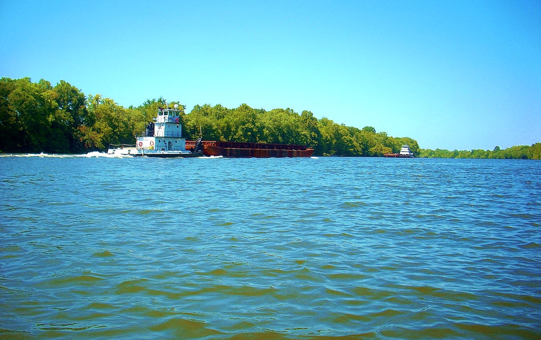 It was at about this point where a couple vessels passed me going in opposite directions. One was the pushboat Dr. Edwin H. Welch of Amherst Madison while the other was named The Lucedale. Amherst Madison is headquarted just up this river in Charleston, WV but you'll see their vessels all over the inland waterways. In fact, I see them quite frequently on my Ohio River trips. As for the Lucedale, I couldn't find any information. It's the vessel in the foreground of the photo below...