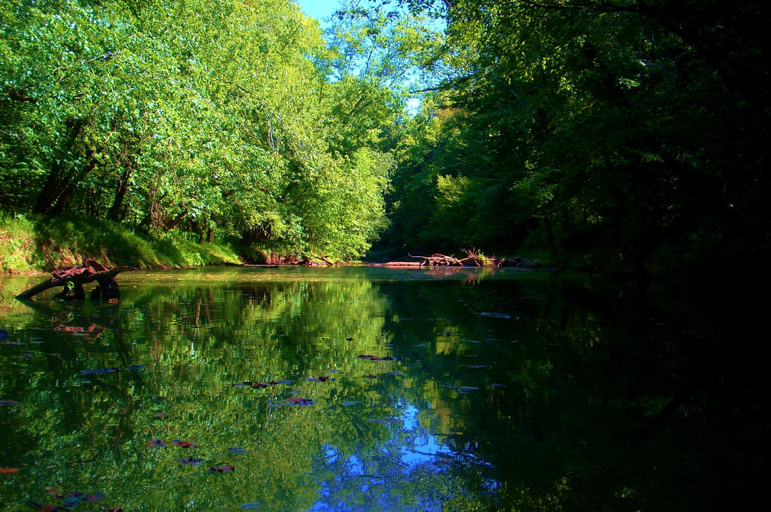 Note in the photo above that Twelve Mile Creek enters the Kanahwa right under the bridge you see. On the Kanahwa you'll find that all the side streams are named for the distance they are upstream from the Ohio River. I found this interesting. I'd encountered an occasional stream named in this fashion but never and entire river's worth! Anyway, on my last trip I found that Twelve Mile goes back at least 2 1/2 miles and it's very pleasant! The only thing that stopped me at that point was a deadfall and that might no longer be a hindrance. Anyway, since I'd paddled it before I headed on upriver on the Kanahwa to explore some new territory.