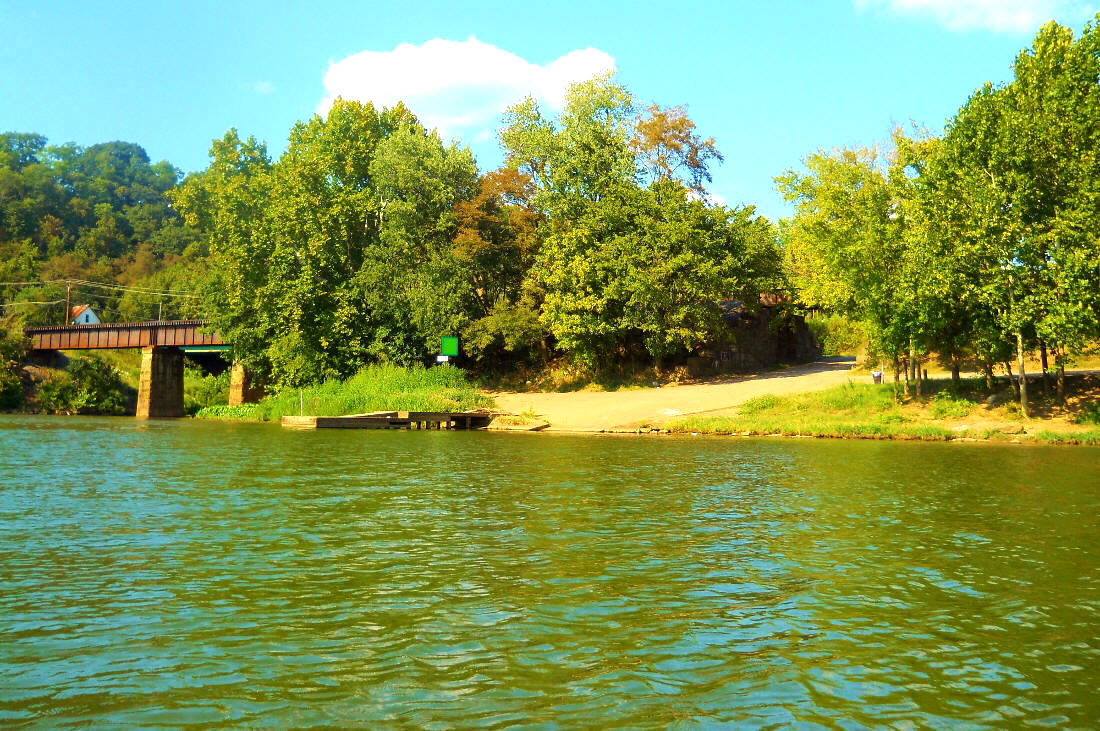 Today I once again used the ramp in Leon, West Virginia as I'd done way back on my last trip in 2012. A lot had occurred since then including a move to Wisconsin and back. It was nice to get back here again! As for this ramp, it can be a little hard to find so I’ve got full directions at the end. Suffice it for now that there’s a small space between WV Route 62, some railroad tracks and the river and this is where you'll find it. There are several parking spaces but no facilities. Please note that while this a very nice place to put in it has very poor visibility. I would not recommend being here alone.