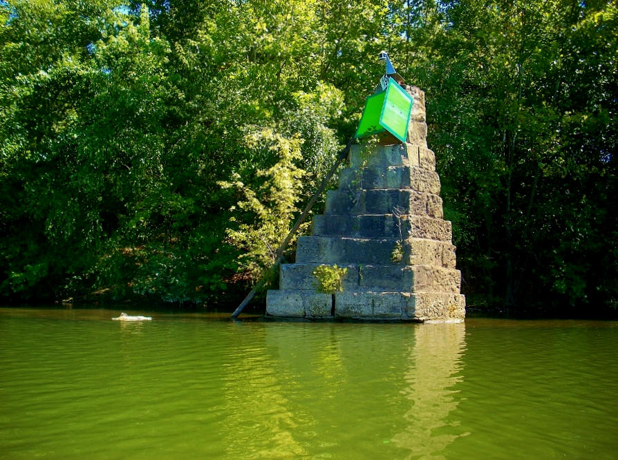 Something I also found interesting was the light and day marker on the opposite side of the Kanawha. It's called the Dam 10 Marker, and while I didn't see any sign of the remnants of a lock or dam I do see that there's a road up there with the same name. Surely there must have been a structure here at some point, perhaps with the same kind of construction as the stone pyramid below. Did they cart away all rest of the structure and leave this to put a light and day marker on?