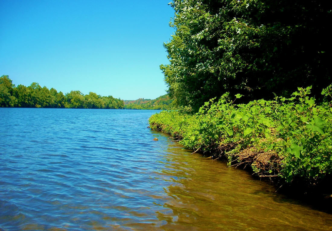 Anyway, if you now turn around and look back upriver from the mouth you'll be in the midst of a very long, straight section of the Kanawha which extends nearly 4 miles. If you also take into account that the side streams don't go back very far - only as far as is visible from their entrances - those two things combined with the peacefulness of this section make for a stretch that is perfect for quiet contemplation. What I mean is that there's very little to distract you, such that I can almost guarantee you that if you've got a problem (or problems) to sort out you'll be well on your way to some solutions by the time you've completed this.