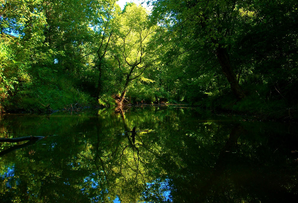 Little Buffalo Creek enters the river a little further up on the same side at mile 26. You can get in a little way for some nice photos. Note the stone culvert in the back which is the extent of navigation.