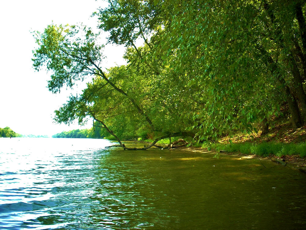 Today I put in about noon. I'd eventually find that with a little current and a fairly steady wind that it would take me 4 hours to get upriver to the Winfield Lock and Dam and only 2 1/2 hours to get back. :) The dam is in a really interesting spot. Wait til you see it!