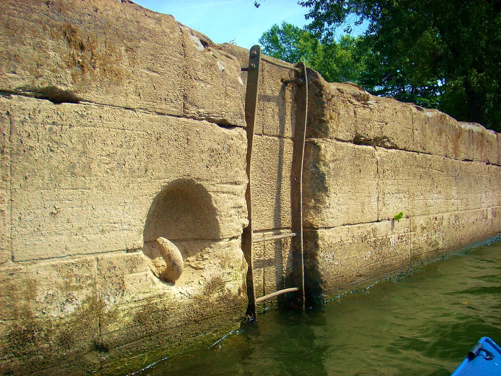 As you're paddling upriver you'll note a new distance sign every 500 yards - you're getting a countdown as to how much farther you have to go before - Peek-A-Boo!!! The lock wall! Below are some photos from the area as I (very carefully lest I get blown up by a barge coming around the corner) paddled across to the other side to get a better, more all encompassing view...