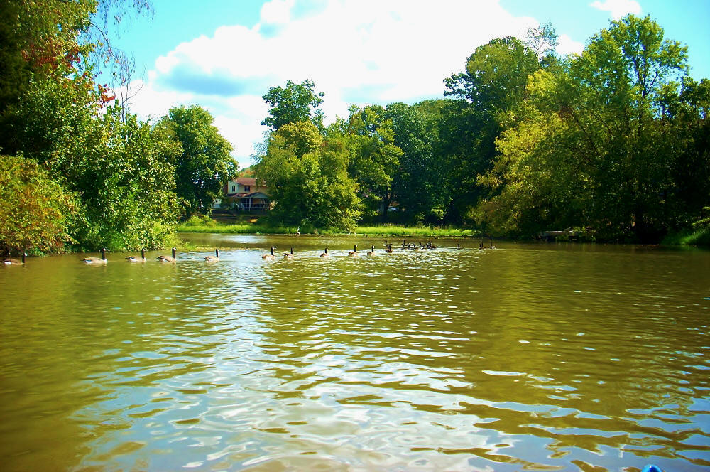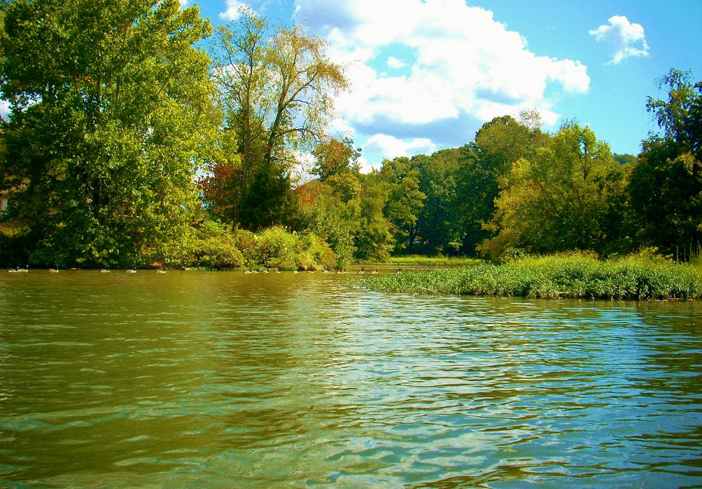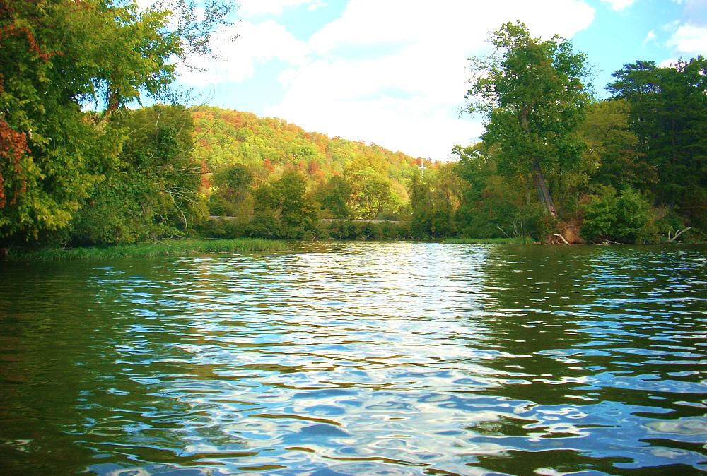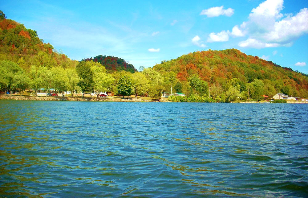 I can tell you that the general feel for this section of the river is much, much different from what you'll see downstream from the dam that's here in Winfield, West Virginia. The farmland is still around, of course, but it's elevated up and further from the shoreline because of the hillier terrain out here. In fact, the terrain doesn't leave much room for anything but rows of houses along the shoreline. As far as incoming streams, you'll see several in this section but they're either too shallow to paddle, too close to the dwellings to be comfortable or they're full of boats!