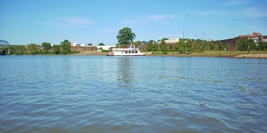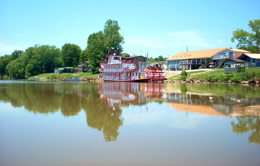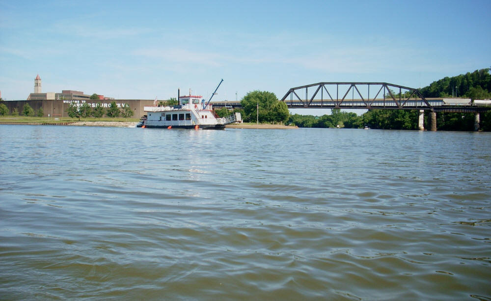 Please also be aware that the sternwheel boat that takes visitors to Blennerhasset Island departs from downtown Parkersburg and travels upriver on the Ohio for about a mile to the island and back regularly during the day. In fact, as I began the day I was able to clearly hear the announcer in the boat giving some history about the island and if I understood correctly, he said that the island was in his own family's history. Anyway, you'll want to watch out for the vessel. Here it comes... :)
