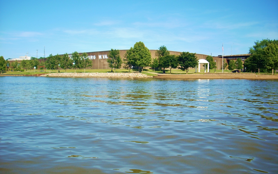 Anyway, as you first look up the Little Kanawha from it's mouth on the Ohio, you'll immediately notice the marina alongside the downtown Parkersburg flood wall which extends up the left side for roughly a mile. On the right side you'll find a bar/restaurant called Kokomo's which is located on Facebook. Going past their sign always reminds me of the Beach Boys song which then proceeds to go through my head for about another 1/2 hour. :) Here are some scenes from the Ohio River/Little Kanawha intersection... I was stunned to see how few people were in the beautiful riverfront park.