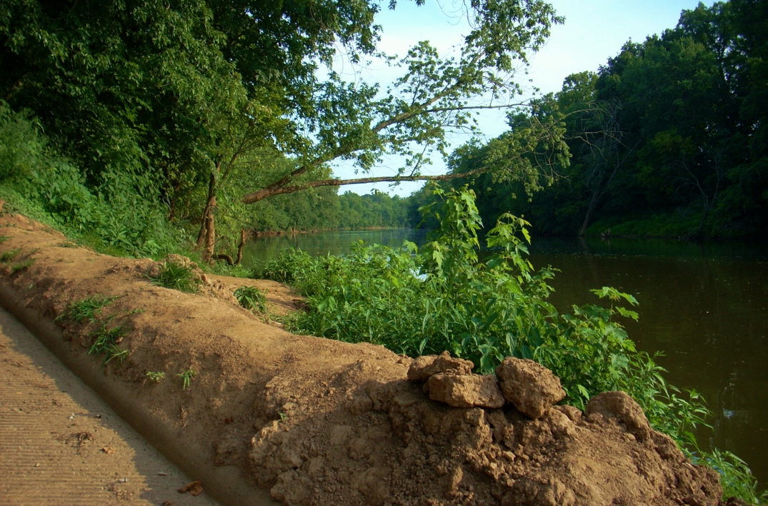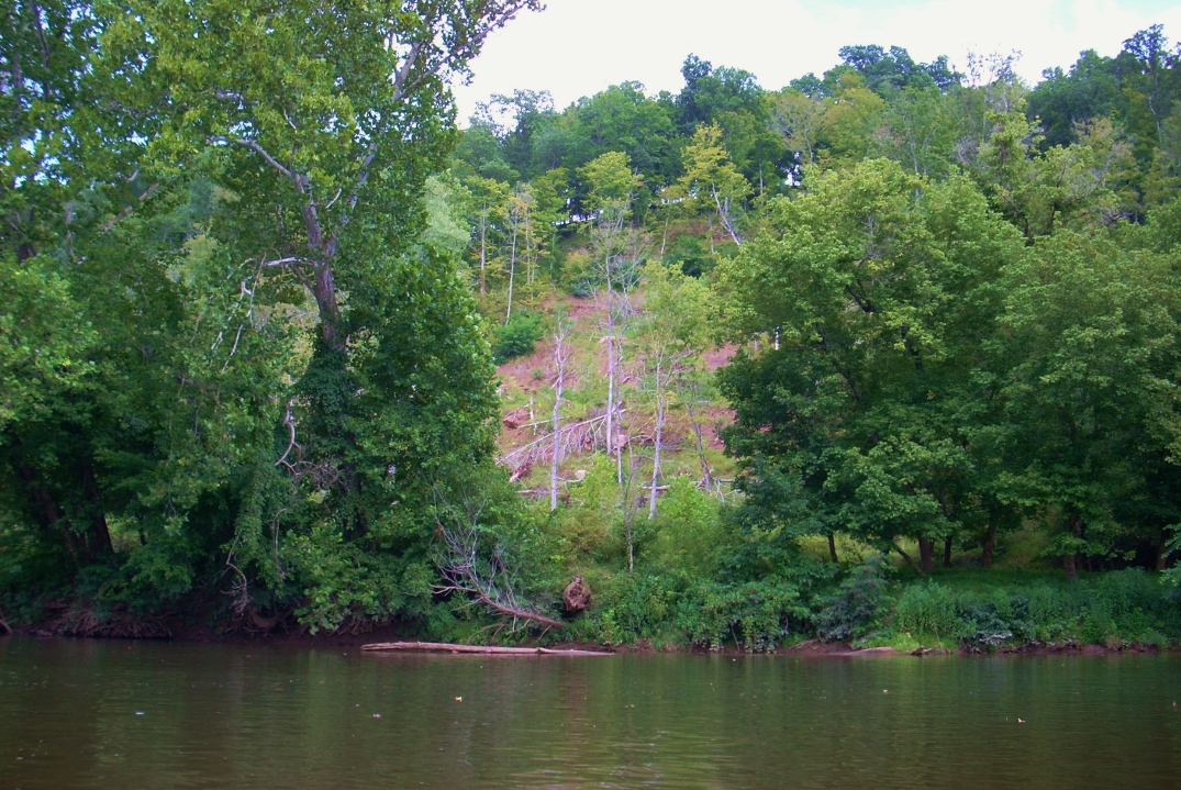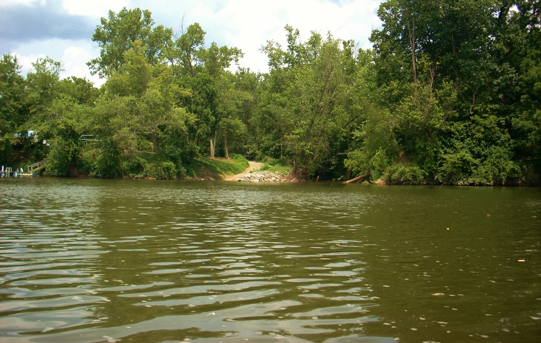 Not too much into the second 2 mile straight I found a spot where there were old wood reinforcements down at the water's edge on either side of the river. Could this possibly have been the location of an old ferry run? The spot comes at a point where Awesome Valley Drive is on the left and Emerick Lane is on the right. However, I'd expect that if this were an old launch that one of these roads would have "Ferry" in the name...