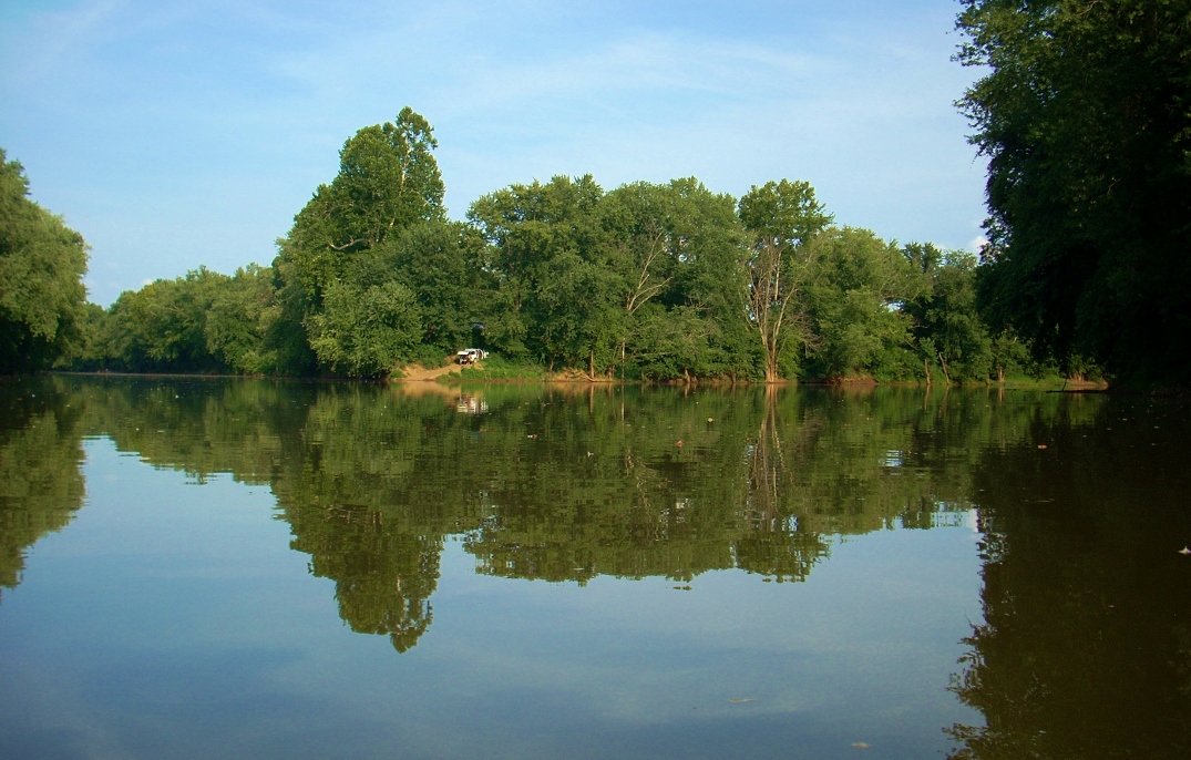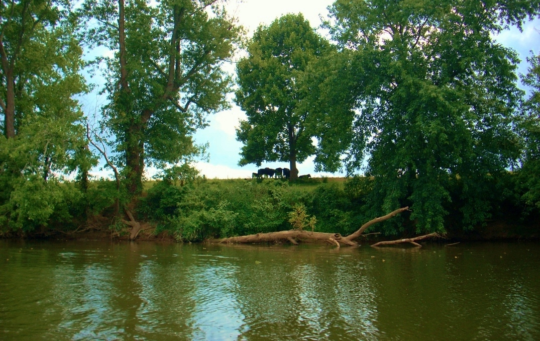 The next 4 miles come in a couple 2 mile straights and I found the first one, in particular, to be incredibly peaceful. Indeed, this section contained some of the most peaceful areas I've ever experienced on a river. One interesting point came on the left side where there's a fairly large hill that appears prone to landslides. At the top, however, you'll see a line of trees and among them I could hear some more cows "mooing" to break my reverie. Other than that, you're basically alone amongst the farmland other than an occassional boat dock or riverside camping setup.