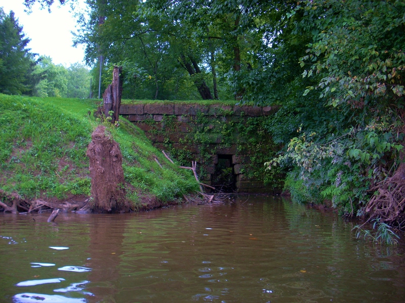 Then, in another mile and a half after rounding a right curve called Butcher's Bend, you'll see an interesting spot on the left side where a tiny unnamed stream comes in under a very old brick bridge (see below). I'm not sure what the technical name for this type of bridge would be. If anyone could tell me I'd be appreciative, but another larger stream comes in on your left directly afterward. This merged Walker Creek/Kites Run is navigable. The North Bend Trail will break from you at this point, to follow this creek. In fact, it appears that North Bend runs alongside a few more different streams before it ends, making it an excellent way to explore different West Virgnia waterways.