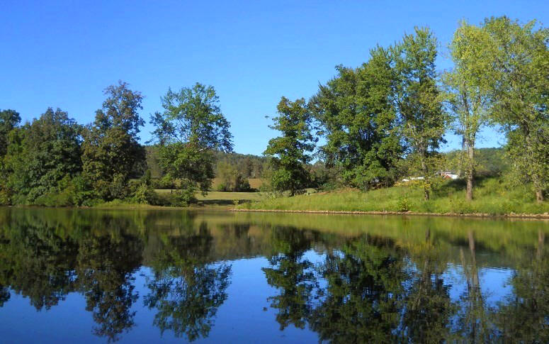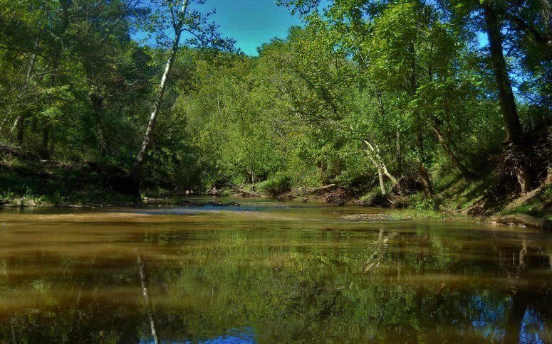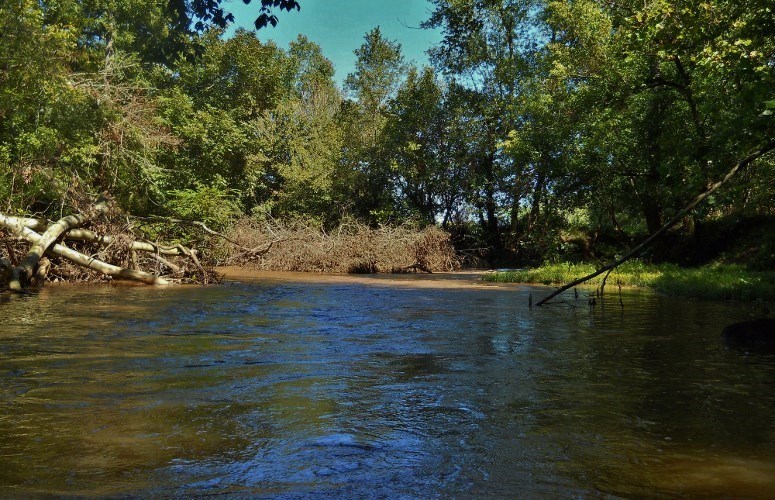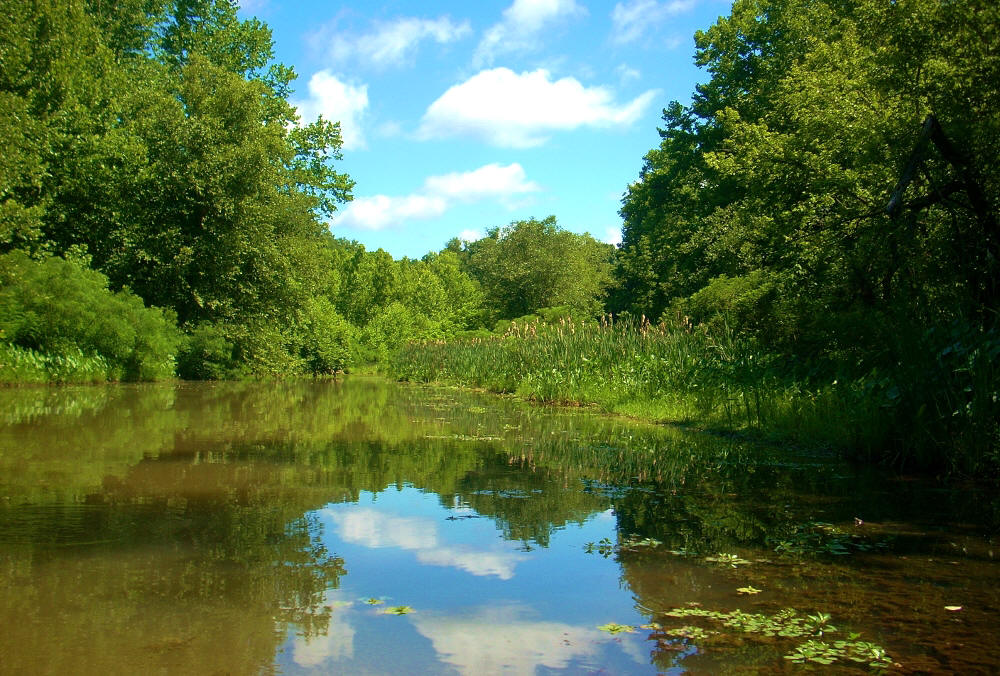 Then, back on the main stream, I made a left bend and then found myself on something of a straightaway. A couple little streams enter on the left here as does another one right at the end. One was paddle-able, but with residences being quite close to the creek I didn't chance it. It’s was beautiful in here too, though, with the rural scenes and the hills in the background! Below are some pictures of this area…